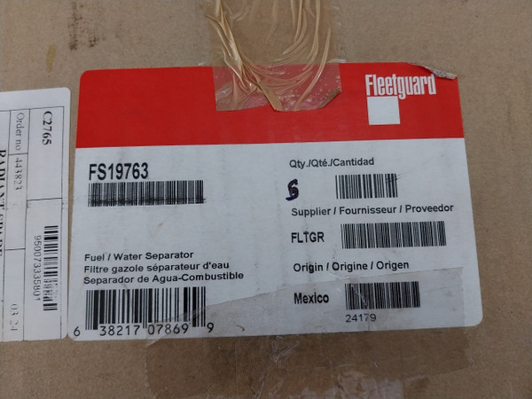 Fleetguard Fs19763 Elemax Plus Size Fuel/Water Separator FilterFleetguardStrataporeElemaxFuel/Water SeparatorFs197636 38217 07869 92417924180181410:35C2765Order No: 443823950073335801Origin: MexicoMade In MexicoWeight: 400 Gm