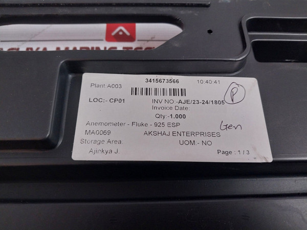 Fluke 925 Impeller Anemometer Meter Wind Velocity Temperature 018001064Fluke CorporationVane Anemometer925925 EspR-rem Flk 018001064Asset No: 107000049348Ma00693415673566I.D.No: Sctsa1Made In TaiwanWeight: 4.380 Kg