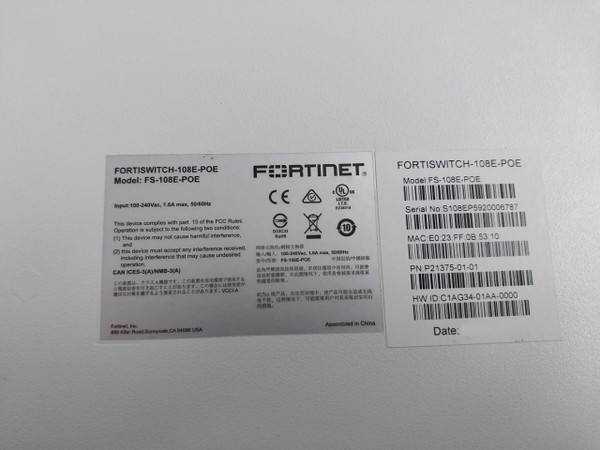 Fortinet Fs-108E-poe Ethernet Switch 100-240Vac 1.6A Max. 50/60Hz E238018