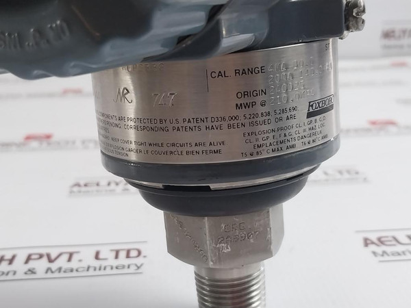 Foxboro Iap10-d20C1F-m2L1 Pressure Transmitter 12.5-42 Vdc 4Ma E C0994502The Foxboro Co.Model: Iap10-d20C1F-m2L1Reference: 00030500Aux. Spec.: E C0994502Supply: 12.5-42 VdcMep2338Cal. Range: 4Ma 80.020Ma 140.0KpaOrigin: 2A0025Mwp @ 210.0KpaT5 @ 85˚C Max. Amb. T6 @ 80˚C Amb.Enclosure 4XUpg01Nca852M26AOrg. 2A9907  00170ExMwp 30PsiaWeight: 1.740 Kg