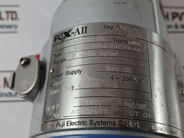 Fuji Electric Fkcb36V4-2Acyy-aa Pressure Transmitter 24V