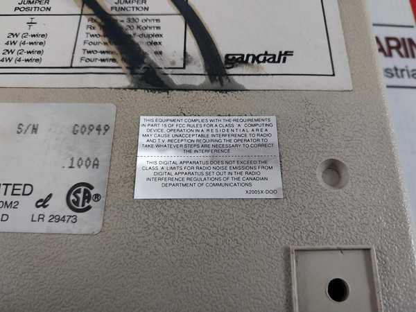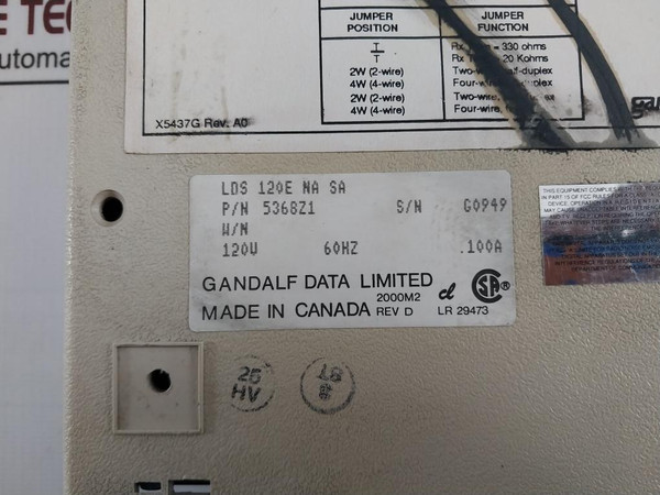 Gandalf Lds 120E Limited Distance Modem 5368Z1 120V 60Hz 100A 2000M2 Rev.DGandalf Data LimitedLds 120ELds 120E Na SaP/N: 5368Z1120V 60Hz .100A2000M2Rev: DX2005X-dooX5437G Rev: A0X5467A-a00Made In CanadaWeight: 550 Gm