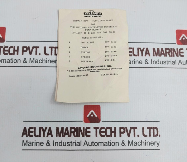 Gaylord Vf-100P-b-spk Ventilator Detergent Pump Repair Kit