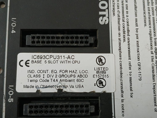 Ge Fanuc Ic693Cpu311-ac Programmable Controller Base 5-slot With Cpu Module