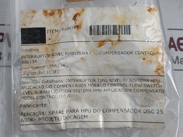 Aplicacao/Application: Spare Para Hpu Do Compensador Dsc 25 600K/ Spare For Dsc 25 600K Compensator Hpu
