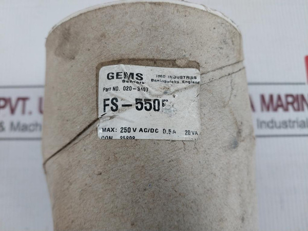 Gems Sensors 020-3497 Paddle Flow Switch For Cooling Water 250Vac/Dc 0.5A 20Va