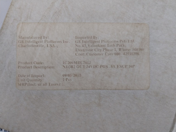 Manufactured By: Ge Intelligent Platforms Inc.