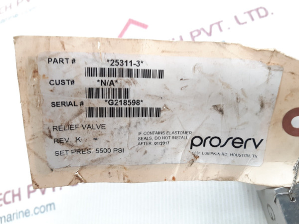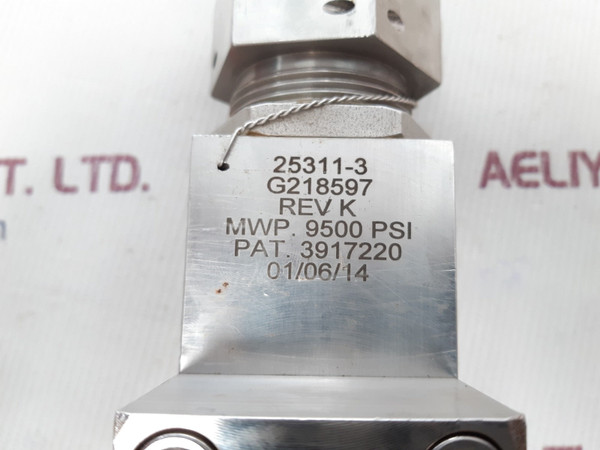 Gilmore 25311-3 Relief Valve G218598 Rev K Mwp.9500 Psi 5500Psi