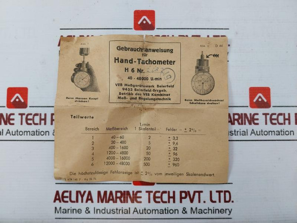 H 6 Hand Tachometer Hasler Type 40-4800 U/Min Set