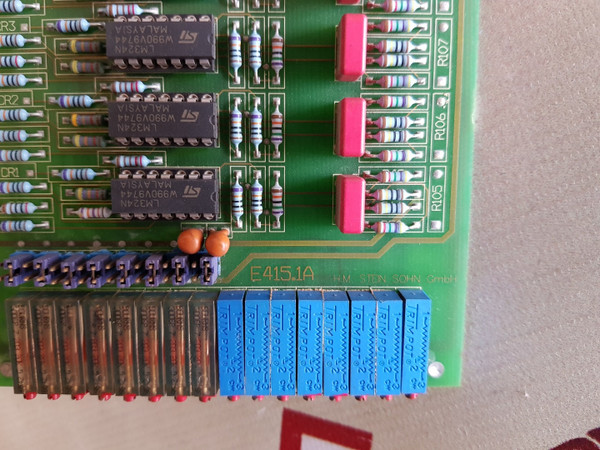 The H.M. Stein Sohn E 415.1 DP16 PCB Card is a durable and precision-engineered circuit board designed for reliable performance in automation and industrial control applications. Manufactured by H.M. Stein Sohn GmbH, this board ensures accurate signal processing, efficient power distribution, and long-lasting stability even under demanding industrial conditions. Its robust design and high-quality components make it ideal for integration into various industrial machines and control systems.