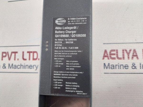 | Product Name | HBC Radiomatic QA109600/QD109300 Battery Charger 005-01-00518 |