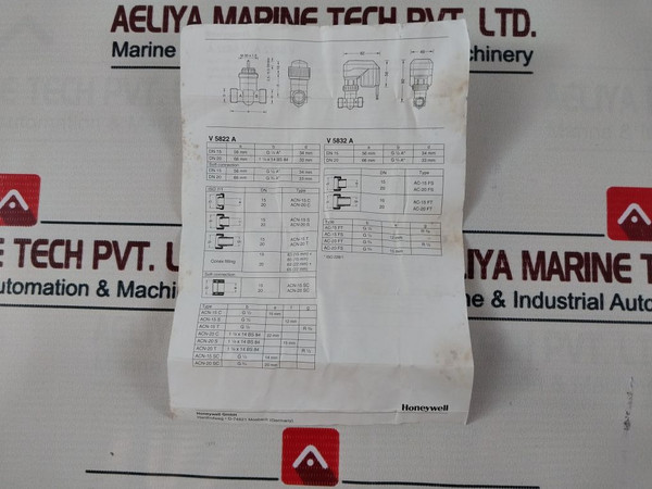 Honeywell V5832A1053 2-way Control Valve Dn15 Pn16 Kvs 1.60