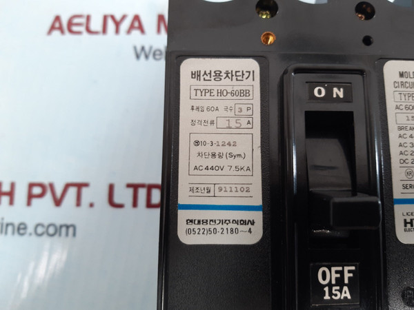Hyundai Electrical Ho-60Bb 15A 3P Molded Case Circuit Breaker Ac 600V Dc 250V