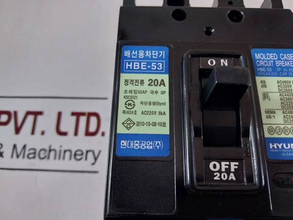 Hyundai Hbe-53 Molded Case Circuit Breaker 20A