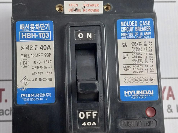 Hyundai Hbh-103 Molded Case Circuit Breaker 3P Ac440V
