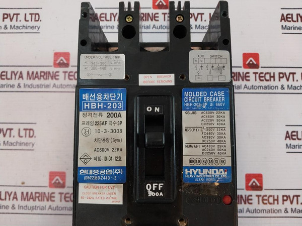 Hyundai Hbh-203 Molded Case Circuit Breaker 3P 200A 50/60Hz