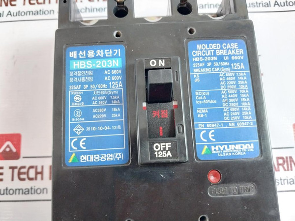 Hyundai Hbs-203N Molded Case Circuit Breaker 3P 125A 50/60Hz