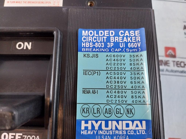 Hyundai Hbs-803 Molded Case Circuit Breaker 3-pole 700A 660V