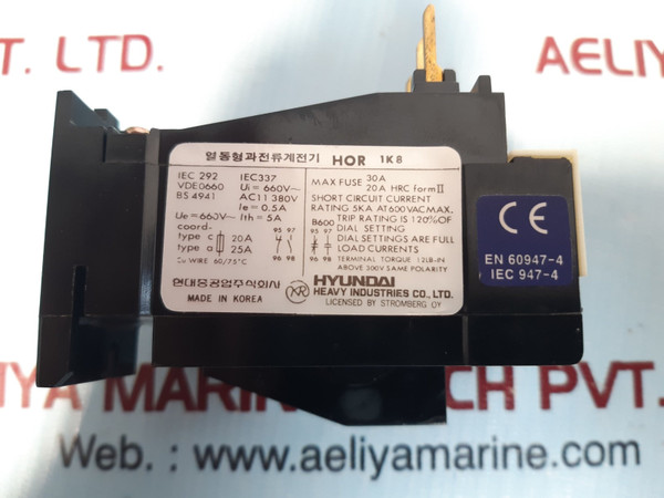 Hyundai Hor 1K 8 Thermal Overload Relay Bs 4941 Ac11 380V