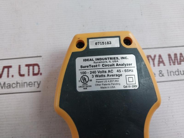 Ideal 61-165 Sure Test Circuit Analyzer 100-240Vac 45-65Hz 3W Cat III-300VIdeal Industries, Inc.Sure Test  Circuit AnalyzerTrue Rms61-165100-240Volts Ac45-65Hz3 Watts AverageCat III-300VPatent Us 4,857,8620715183Made In UsaWeight: 230 Gm