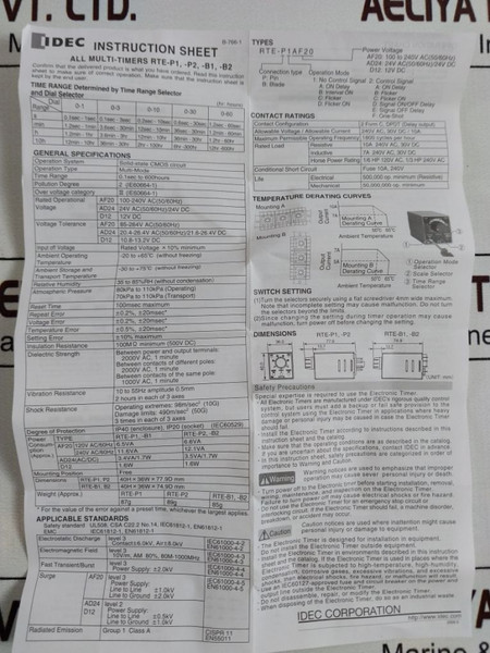 Idec Rte-p1Ad24 Electronic Time Delay Relay 1S-10 Min, 24Vdc