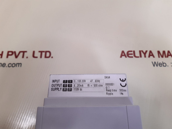 Ime d4u4 voltage transducerabbvoltage transducerimeinput: 2 5 0...133, 33v 47...63hzoutput: 12 13 4...20ma rl: less than 500 ohmsupply: 20 22 110v dcd4u40000851cl. 1resp. time: 300msripple: 1%871.3 main switchboard 6.6kvime voltage transducer d4u4 110 vdcabb sace t.m.s.uxab4990980001600000800/001700weight: 315 gm
