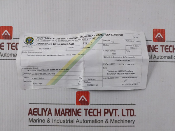 Dados Complementares/ Complementary Data: Densímetro Para Petróleo E Seus Derivados Liquidos Escala De 0,850 A 0,900 G/Ml/ Hydrometer For Petroleum And Its Liquid Derivatives, Scale From 0.850 To 0.900 G/Ml