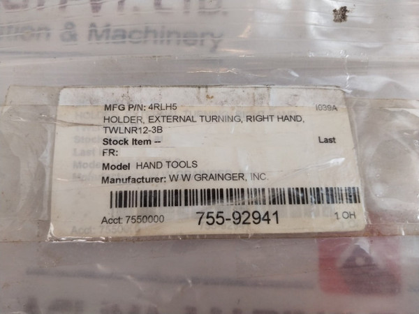 Ingersoll Twlnr 12-3B Right Hand External Turning Holder 4Rlh5