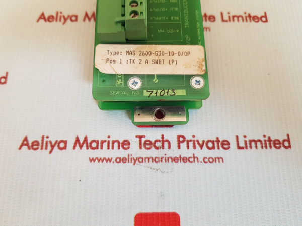 | Description | MAS 2600-630-10-0/0P Transducer Amplifier |