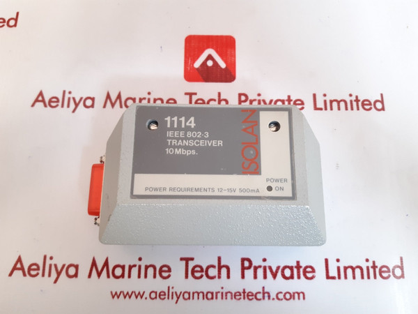 Isolan 1114 ieee 802-3 10 mb/s transceiverisolan1114 ieee 802-3transceiver 10mbps.power requirements 12-15v 500mabicc data networkscomplies with ieee 802.3 iso/dis 8802/3type:1114 independently shownto conform to ieee 802.3csma\cd local area network10 mb/s transceiverbatch code 1114-8te068732haccessory edp equipment98c6made in hongkongweight: 335 gm