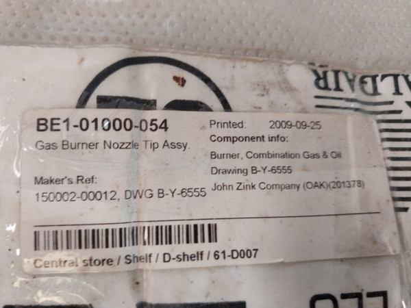 John Zink 150002-00012 Gas Burner Nozzle Tip Accessory Be1-01000-054