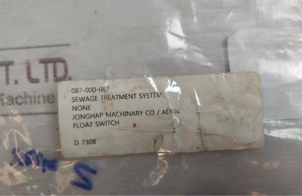Jonghap Aer0B 087-000-007 Float Switch 2M Cable For Sewage SystemJonghap Machinery CoFloat SwitchSewage Treatment SystemAer0B2.M087-000-007D 7308Weight: 140 Gm