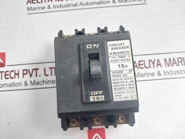 Kasuga Kb33Ca 3-pole Circuit Breaker Ac220V Bc2.5Ka Ac500V Nk84T212 JisKasuga E.W.Ltd.Circuit BreakerKb33Ca41-18922Ac220V Bc2.5Ka15AAc500V 3PFrame 30ABreaking CapacityNk84T212 JisAc220V 2.5KaAc460V 1.5Ka12-402-3009JapanWeight: 330 Gm