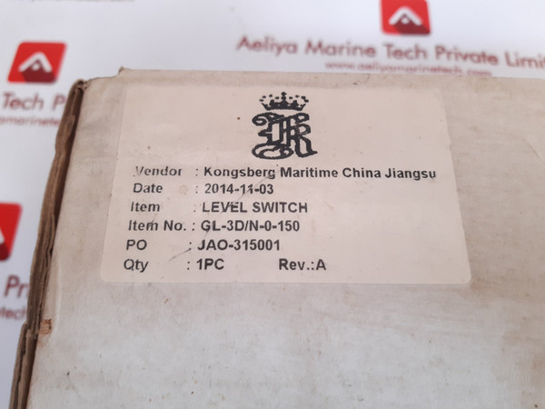 Kongsberg gl-3d/n-0-150 level switchmade by kongsberg maritime jiangsu chinaelectronic level switchgl-3d/n-0-150 20mmstorage temperature: -45°c to +100°citem: level switchitem no: gl-3d/n-0-150rev.: atemp. sensor output pt100weight: 720 gm