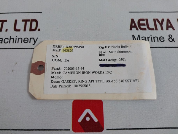 Desc: Gasket, Ring Api Type Bx-153 316 Sst Api