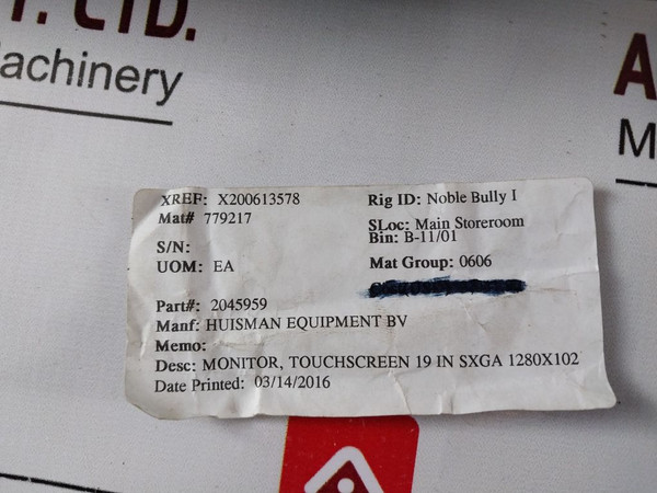 Desc: Monitor, Touchscreen 19 In Sxga 1280X102