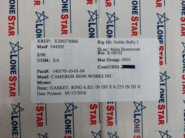 Desc: Gasket, Ring 6.821 In Od X 6.233 In Id X
