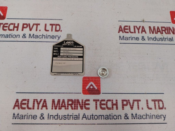 Lot of 3X Lamot 1/4" STD (AA) Rupture Pressure Disk CS21602-41 6300 PSI