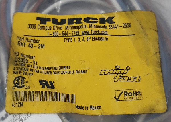 Lot Of 3X Turck Rkf 40-2M Cordset
