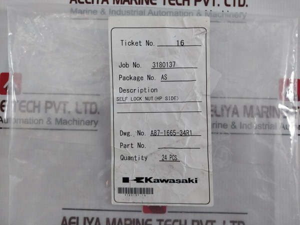Lot Of 6X Kawasaki Self Lock Nut A87-1665-34R1 3180137.16KawasakiDescription: Self Lock Nut (Hp Side)Dwg. No.: A87-1665-34R1Ticket No.: 16Package No.: As58.03180137.16Weight: 50 Gm