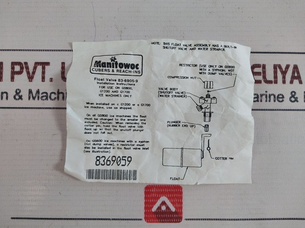 Manitowoc 83-6905-9 Float Valve Assembly
