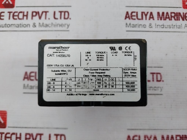 Marathon 1423570 Power Distribution Block 3 Pole 600V 175A