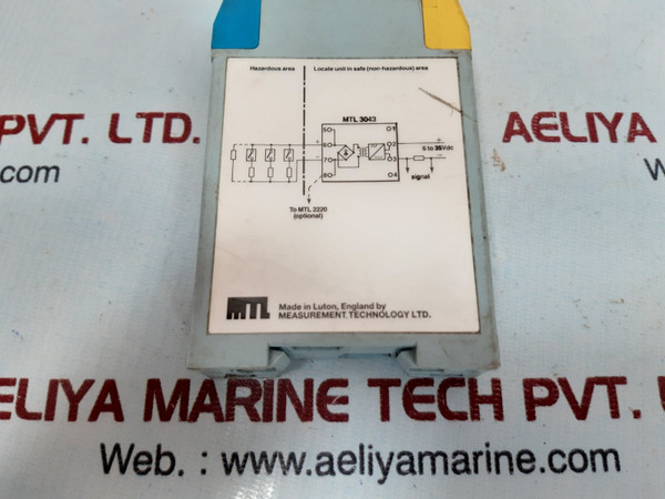 Measurement technology mtl 3043 dc isolator, 1/40mamtlmeasurement technology ltd.mtl 3000 series50mamtl 3043 dc isolator,1/40ma[eexia] iic baseefa no. ex 86b2285umax:out 28vimax: out 93maum=250vmax amb temp 60ºcint.safe connections cl.i div.1.gps a,b,c,d;cl.ii div.1 gps.e,g; cl.iii div.1 entity.accordwith mtl sci-134.vm=250rms.intrinsically safe field connections for class i, ii,iii groups a,b,c,d,e,f and g hazardous locations[ex ia]supply: 6 t 35v dcasev 87.1bo1283thermotronic ag,bern.iic t6gyj 93107ex ia iicx cb.n 145 cm.sci-263made in luton,england bymeasurement technology ltdweight: 140 gm