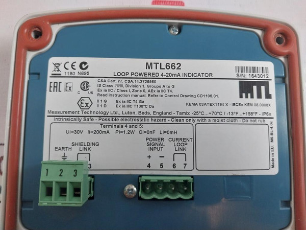 Measurement Technology Mtl662 Loop Powered Display 4-20Ma Indicator 30V