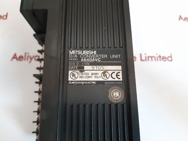 Mitsubishi a64davc d/a converter unitmitsubishi electricmelsec model: a64davcd/a 0~± 10vd/a converter unitbd992d010h28dc24v24gweight:900 gm