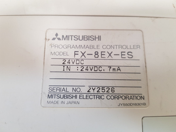 Mitsubishi Fx-8Ex-es Programmable Controller 24Vdc 7Mamitsubishi electric corporation programmable controller fx-8exmodel: fx-8ex-es24vdc in: 24vdc, 7majy550d18301b made in japanweight: 245 gm