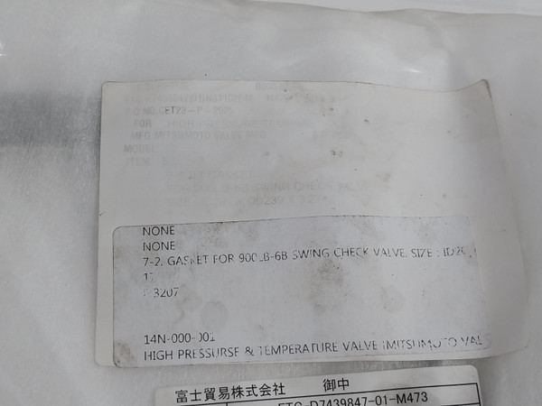 Mitsumoto 17 Gasket For High Pressure Swing Check Valve Id201 X Od239 X 3.2T