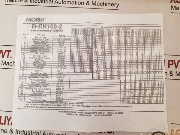 Morin b-rk-100-2 repair kit for morin pneumatic actuator