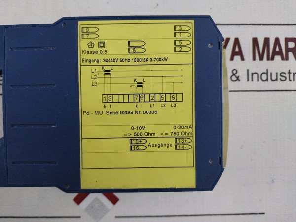 Eingang/Input: 3X440V 50Hz 1500/5A 0-700Kw