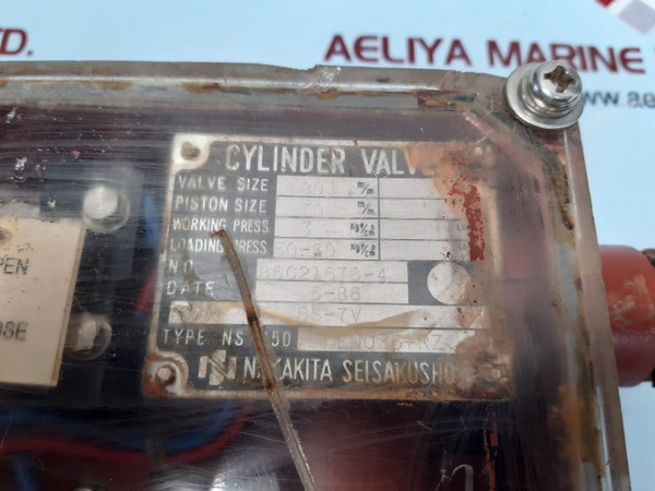 Nakakita En0Z5-rz Bs-7V Cylinder Valve 86C2167B-4 P2727Anakakita seisakushocylinder valvevalve size: 80 mmpiston size: 70 mmworking press.: 3 kgf/cm²loading press.: 50-60 kgf/cm²no: 86c2167b-4bs-7vtype ns 650: en0z5-rzp2727aweight: 1.600 kg